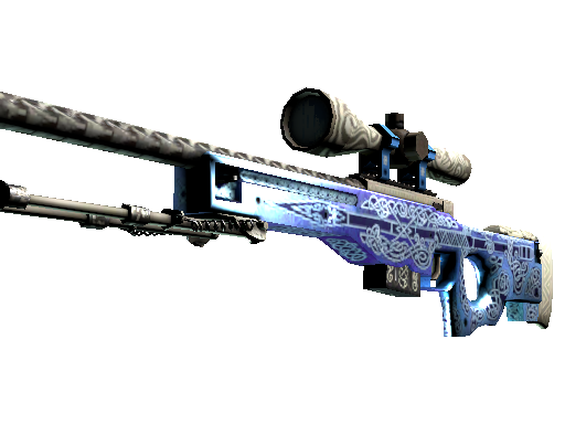 High risk and high reward, the infamous AWP is recognizable by its signature report and one-shot, one-kill policy. Odin’s spear travels down this custom painted pearlescent blue and ivory AWP.